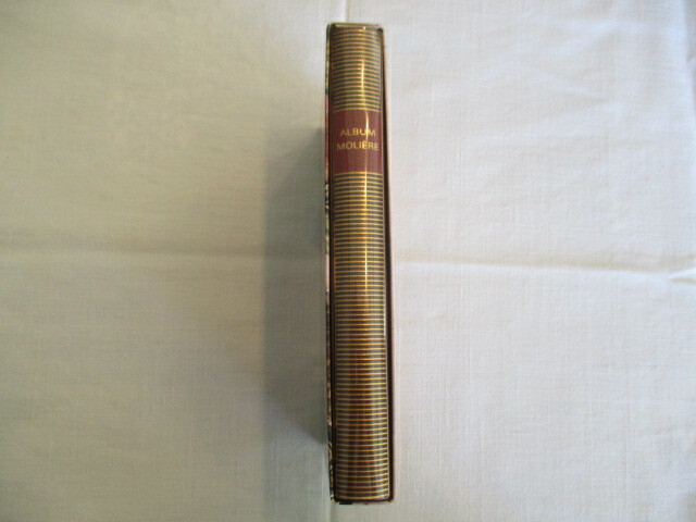 Bibliothèque de la Pléiade, Gallimard, Paris 2010. 1 volume de 318 pages, in-12, relié cuir souple, rhodoïd, étui cartonné illustré en couleurs. 324 illustrations en noir et en couleurs. PRÉSENTATION DE L'ALBUM : Jean-Baptiste Poquelin, dit Molière (1622-1673), est le plus grand auteur comique français. Ses comédies, où s’illustrent des personnages immortels (Harpagon, Tartuffe, Don Juan, Alceste, etc.), n’incitent pas toujours à rire ; il arrive qu’elles nous ouvrent les gouffres de l’âme humaine, et qu’en peignant les vices et les déraisons de ses contemporains, Molière nous révèle les dérisions de notre nature et les servitudes de notre condition. «Rois et reines mis à part, peu de Français de l'ère pré-photographique ont été aussi abondamment portraiturés de leur vivant que Molière ; aucune œuvre, aussi richement et diversement illustrée au cours des siècles, sur le papier ou sur les planches. Le cinéma a élargi la scène et multiplié les visages. La ritualisation de la vie culturelle a vidé de substance les hommages rendus au génie. Dans l'imagerie – faut-il parler d'iconolâtrie? – républicaine, il y a beau temps que Molière a rejoint Marianne. Cet homme dont nous parlerions la langue et dont les combats, contre l'hypocrisie, l'intolérance et le pédantisme, seraient toujours les nôtres, ce saint laïque objet d'une dévotion stérilisante, peut-on encore "l'aimer sincèrement de tout son cœur", comme Sainte-Beuve le prescrivait il y a cent cinquante ans en correctif aux divers fanatismes? Il semble que oui, et chaque mise en scène réussie d'une de ses pièces permet de le vérifier.» François Rey. Album de la Pléiade, n° 49 paru le 17 mai 2010.