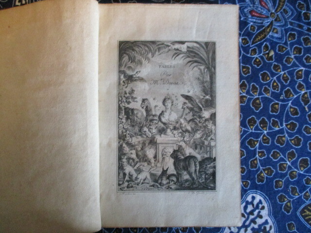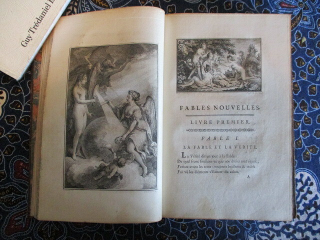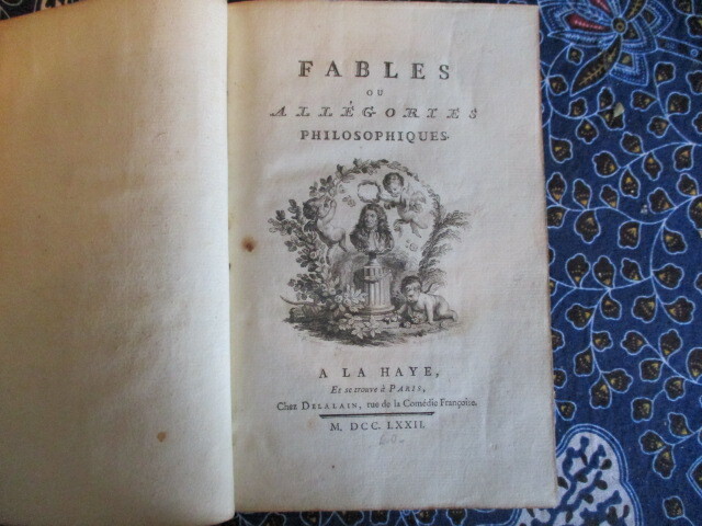 La Haye, Paris Chez Delalain 1772 176 pp. In-8. Relié. Magnifique exemplaire très joliment relié par Claessens père et fils. 1 volume. ÉDITION ORIGINALE de ce recueil de fables illustré d'un frontispice de Marillier gravé par N. de Launay et d'une très jolie vignette en tête. Premier essai d'illustrations pour ce livre, avec le concours des artistes habiles qui devaient créer l'année suivant l'un des plus agréables livres du XVIIIème siècle. Les frontispices et fleurons, qui ont servi pour l'édition de 1773, sont ici en premières épreuves.