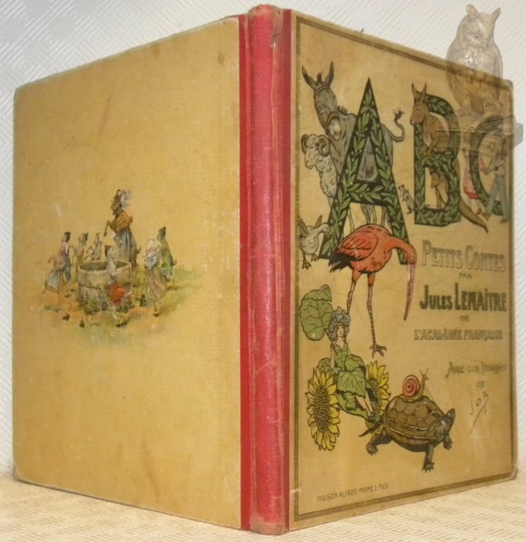 Job Maison Alfred Mame & Fils 25 x 30 Tours Cartonnage de l'éditeur, in-4, s.d. [années 1920], couverture illustrée, dos de toile rouge avec titre ajouté, 54 p., frontispice et nombreuses illustrations en couleurs par Job (1858-1931). ABCédaire merveilleusement illustré, commencé en 1913 par Jules Lemaître (1853-1914), publié en 1919 après la guerre. Ex-libris de la "Harrisburg Public Library" contrecollé sur le contreplat, mentions de l'année 1927 en marge de la préface, pochette de réservation du livre in fine. usures d'usage, légères réparations, bon et solide exemplaire.(ApC122) PHOTOS NUMERIQUES DISPONIBLES PAR EMAIL SUR SIMPLE DEMANDE-DIGITAL PHOTOGRAPS MAY BE AVAILABLE ON REQUEST Livre