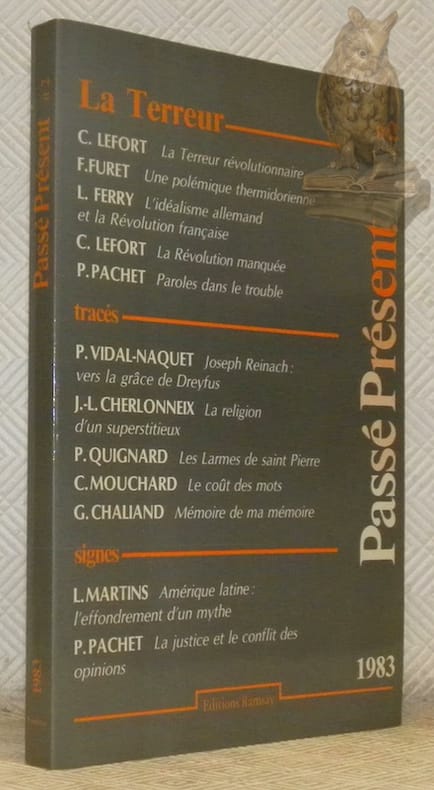 "Sommaire : La Terreur : En deux mots : Décret du 17 sept. 1793, dit ""Loi des suspects"" - Décret du 22 prairial an II - Claude Lefort : La terreur révolutionnaire - François Furet : Une polémique thermidorienne sur la Terreur : autour de Benjamin Constant - Luc Ferry : L'idéalisme allemand et la révolution française - Claude Lefort : Edgar Quinet : la révolution manquée - Pierre Pachet : Georg Büchner : Paroles dans le trouble - Tracés : Pierre Vidal-Naquet : Joseph Reinach : vers la grâce de Dreyfus - Jean-Louis Cherlonneix : la religion d'un superstitieux - Pascal Quignard : Les larmes de saint Pierre - Musique et pavor... Classification Dewey : 70.49-Presse illustrée, magazines, revues"