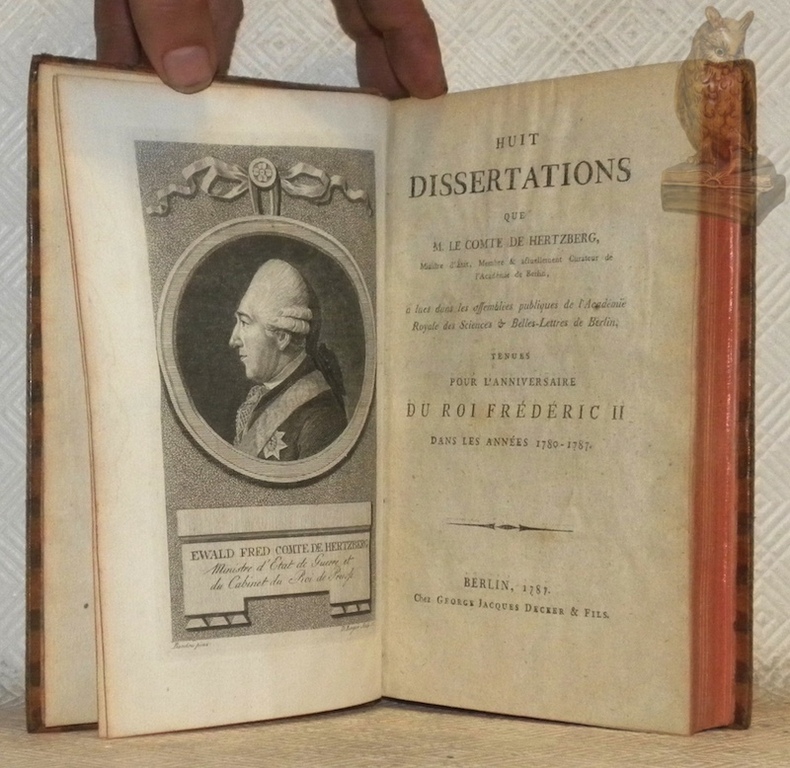 Berlin, Chez George Jacques Decker & Fils 1787, 200x125mm, reliure plein veau raciné de l’époque avec pièce de titre doré et ornementations et fleurons dorés au dos. Bordure fleurie, tranches rouge, garde papier marbré. Plat légèrement frotté, autrement bel exemplaire