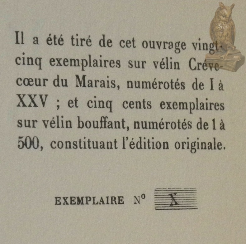 Paris, Librairie les Lettres 1951, 195x150mm, XI - 221pages, broché. Bel exemplaire sur papier véin Créve-coeur du Marais, numéroté n.° X / XXV, premier tirage avant 500 exemplaires sur papier vélin bouffant.