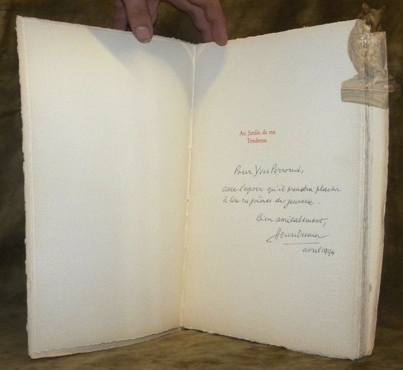 La Ferrière, Chante-Jura, 1956, gr. in-8°, 54 p. + 2 ff., papier bruni, envoi ms. de l'auteur, un des 1000 ex. sur papier volumineux fin blanc, (fin brun !!) n° 00180. brochure originale