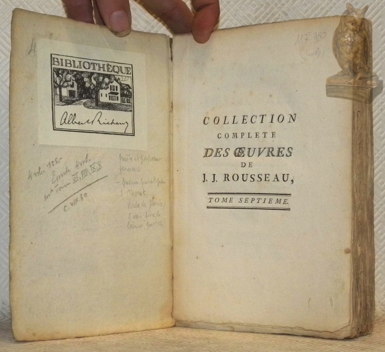 Geneve, 1782, 210x140mm, cartonnage marbré, en attente de reliure. Ex-libris.