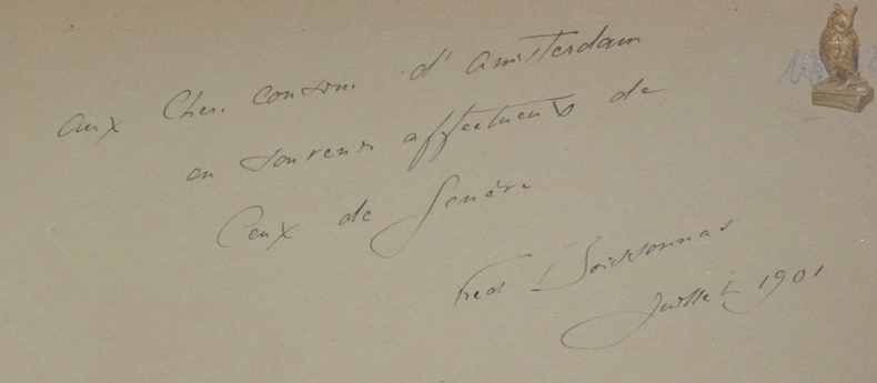 Genève, 1900, 310x255mm, 177pages, cartonnage de l’éditeur. Dédicacé par Fred. Boissonas sur le haut de la page de garde supérieure. Charnières légèrement frottées et coins supérieur cornés, autrement bel exemplaire, intérieur propre.