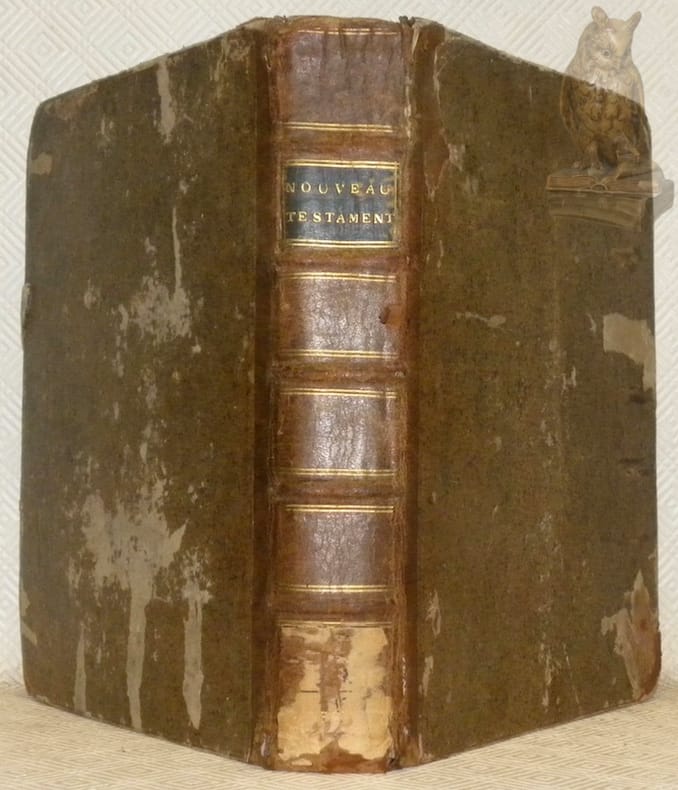 1671 Paris : Pierre Le Petit, 1671-1674. In-4: 21.5 x 28 cm, 1 f. de titre, 2 ff. dépître au Dauphin, 2 ff, davertissement, 3 ff. de privilège et table, 552 pp. de texte et fig. Nouvelle impression de la bible dite de Royaumont, après le première de 1670, illustrée de 265 figures à mi-page. Lhistoire de lAncien testament est de 1674; celle du Nouveau de 1671. Cette Bible populaire, remarquablement illustrée fut reproduite de très nombreuses fois jusqu'au XIXe. Elle fut depuis attribuée à Le Maistre de Sacy, mais serait plutôt l'oeuvre de Nicolas Fontaine. (Brunet IV, 1433). Les deux célèbres Jansénistes ont collaboré à cet ouvrage probablement pendant leur emprisonnement à la Bastille. Très belle reliure de lépoque en basane mouchetée. Dos à cinq nerfs avec pièce de titre de maroquin rouge et caissons ornés aux petits fers. Gardes recouvertes de papier marbré. Tranche rouge. Très bel exemplaire.