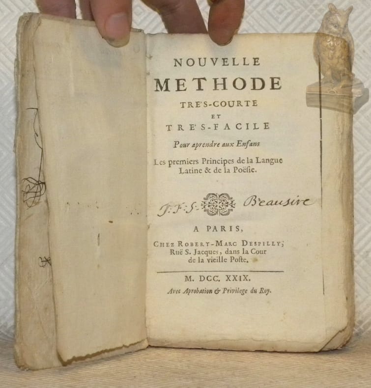 Paris, Robert-Marc Despilly 1729, 165x105mm, 240pages, cartonnage en attente de reliure. Bas du dos déchiré et nom du possesseur sur le haut de la page de garde supérieure et sur le milieu de la page de titre.
