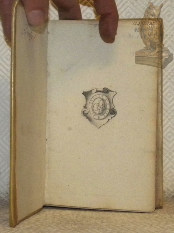 Parisiis (Paris), in Officina Plantiniana Apud Hadrianum Perier, via Jacobae 1598, 180x105mm, reliure parchemin, titre caligraphié et dessins en noir au dos (reliure XXe siècle).