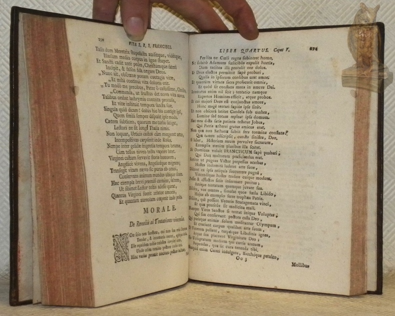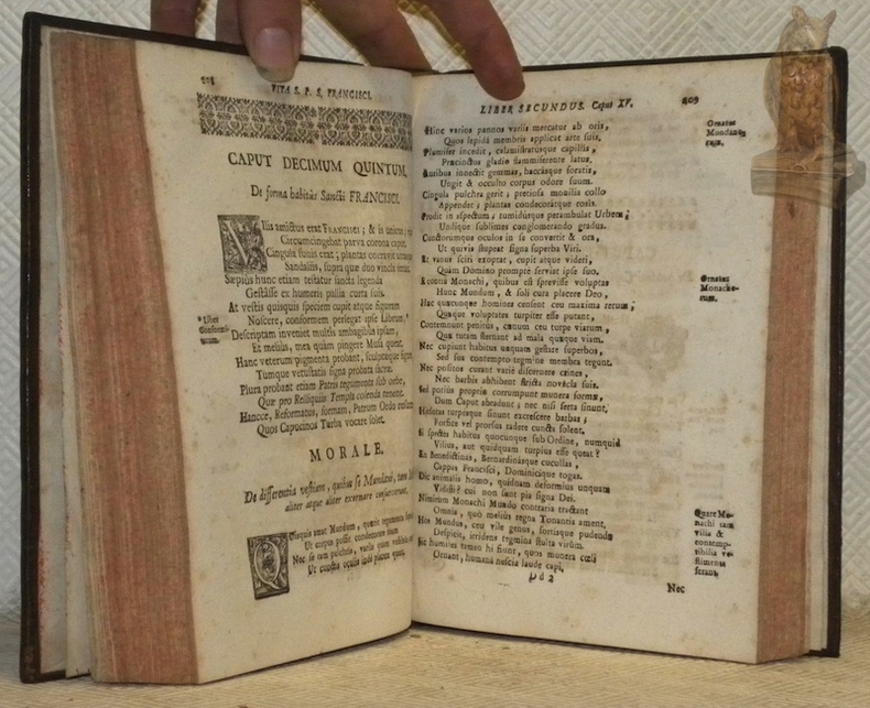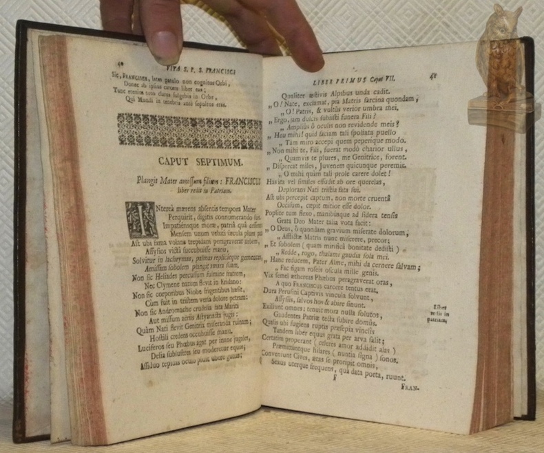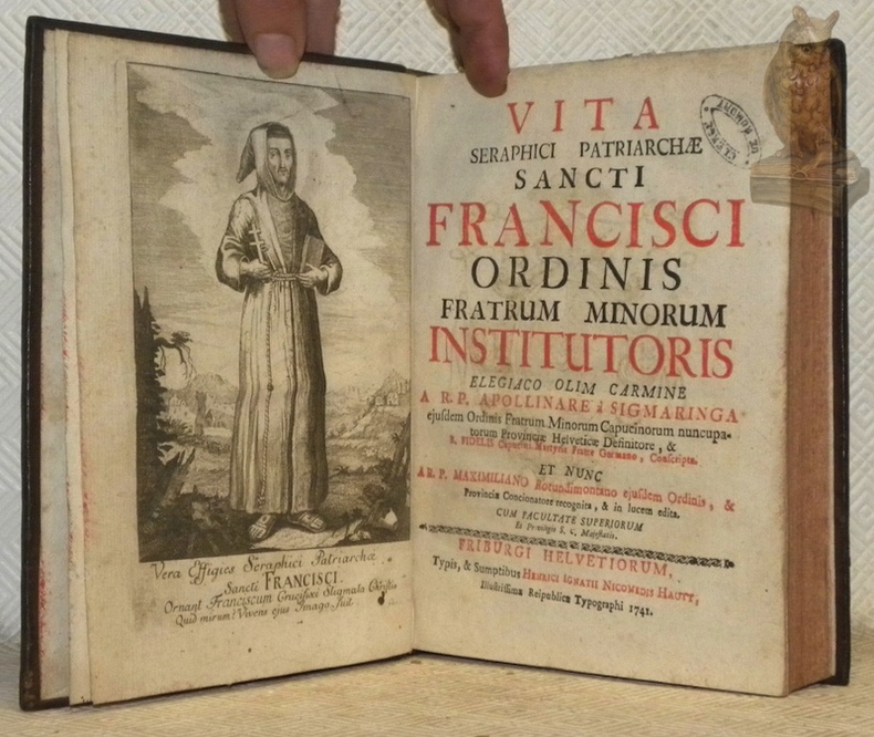 frontispice en taille-douce signée Chovin représentant Saiint François d’Assise . page de titre en imprimés rouge et noir (ecu sur le revers) - 10 ff. - 370 pages - 6 ff., bandeaux, lettrines, culs-de-lampe, Pour un paiement via PayPal, veuillez nous en faire la demande et nous vous enverrons une facture PayPal