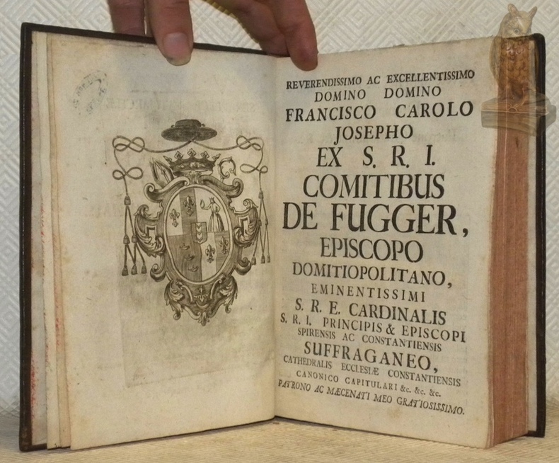 Friburgi Helvetorium (Fribourg), Henrici Ignatii Nicomedis Hautt, illustrissimae Reipublicae typographie 1741, 215x165mm, reliure plein veau marbré de l’époque avec pièce de titre, et ornementations dorés au dos à cinq nerfs, tranches jaspées. Bel exemplaire.