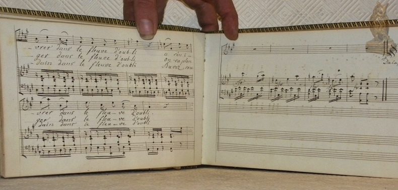 sans date, vers 1850, 245x220mm, reliure pleine basane verte avec titre doré sur le plat supérieur, dentelle intérieure dorée, tranches dorées. Format oblong. Bel exemplaire.