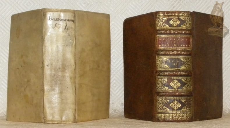 Cologne, Pierre Du Marteau 1665 - 1666, 140x80mm, 140x85mm, ex-libris: Manfred Gsteiger. Reliure volmue I : parchemin de l’époque. Reliure volume II : veau marbré avec pièce de titre, et tomaison et caissons ornés doréa du dos à quatre nerfs, tranches marbrées, bordures dorées. Inscription manuscrite sur le haut du coin de la page de garde supérieure du tome premier et deux ratures sur le milieu du titre du tome second, autrement intérieur propre. Bel exemplaire.