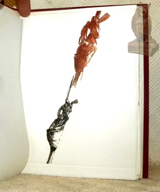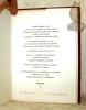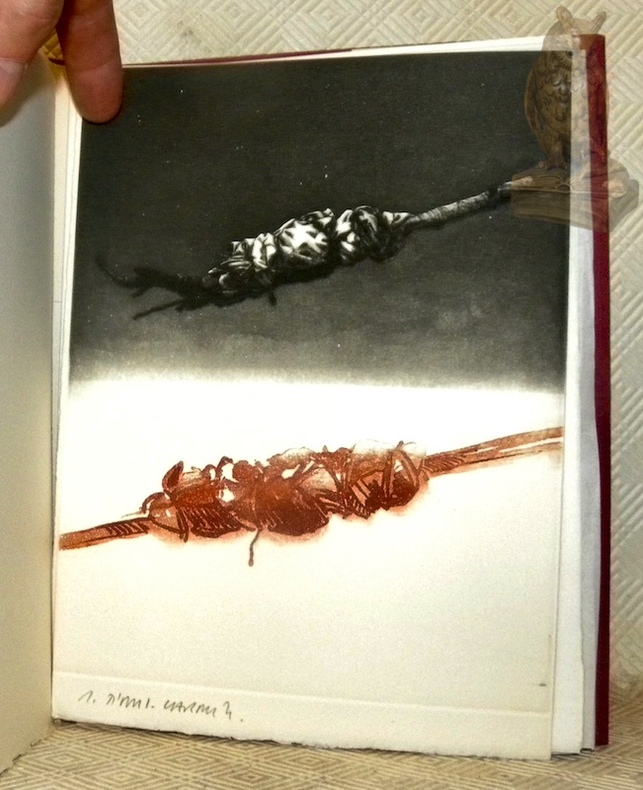 Paris, Maeght Editeur 1977, 265x200mm, 51pages, en feuille, couverture rempliée, chemise rigide toile bordeau et étui en toile noir. Un des 120 exemplaires sur papier vélin d’Arches, comportant six gravures (pointe-sèche, aquatinte) de Gérard Titus-Carmel; la première et la dernière sont signées par l’artiste, numéroté n.° 47 / 120, constituant l’édition originale. Signés au colophon par l’auteur et l’artiste. Achevé d’imprimer le 6 septembre 1977 sur les presses d’Alain Controu pour les gravures et dl’imprimerie Union pour la typographie. Très bel exemplaire.