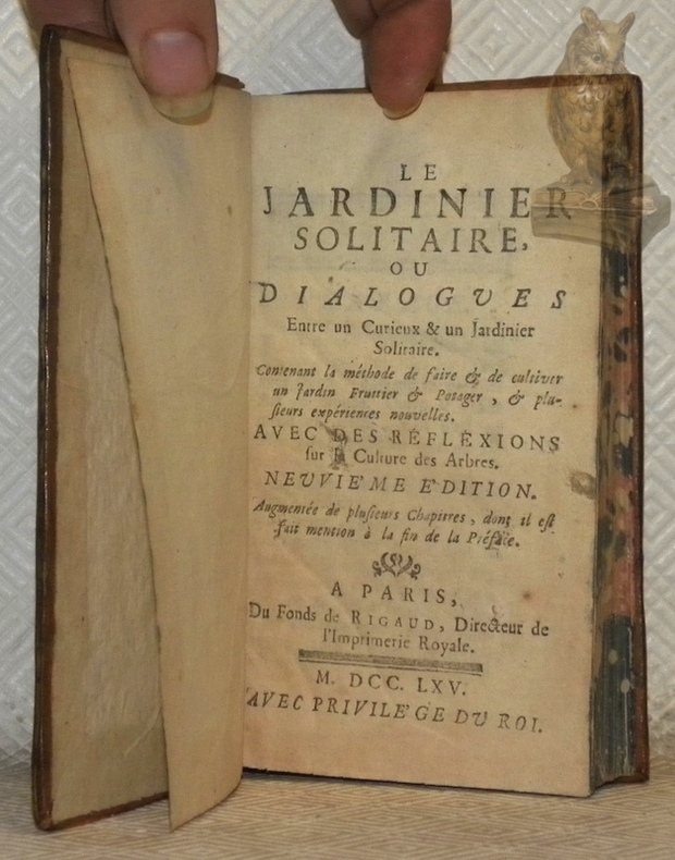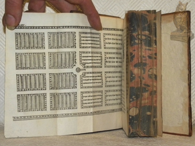 Paris, Rigaud 1765, 170x100mm, reliure d’époque veau marbré avec pièce de titre, et caissons ornés dorés au dos à cinq nerfs, tranches marbrées, bordures dorés. Accrocs sur la coiffe supérieure. Intérieur propre. Bel exemplaire.