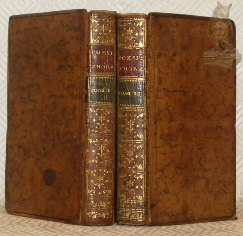 Paris, Saillant 1768, 145x85mm, reliure d’époque veau marbré avec pièces de titre et de tomaions, et caissons ornés dorés au dos, bordures dorés, tranches rouge, garde papier marbré. Ex-libris : Dieu de Lassus, Loge nous La-sus de la Bibliothèque de Mr. de Lassus Baron de Labarthe & de la Vallée de Nestès, Conseille du Grande Chambre au Parlement de Toulouse. Coiffes supérieures abrasées, autrement belle reliure. Bel exemplaire.
