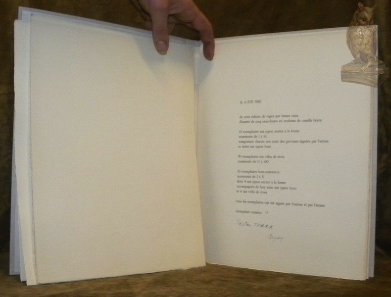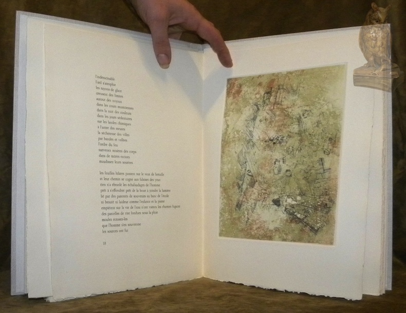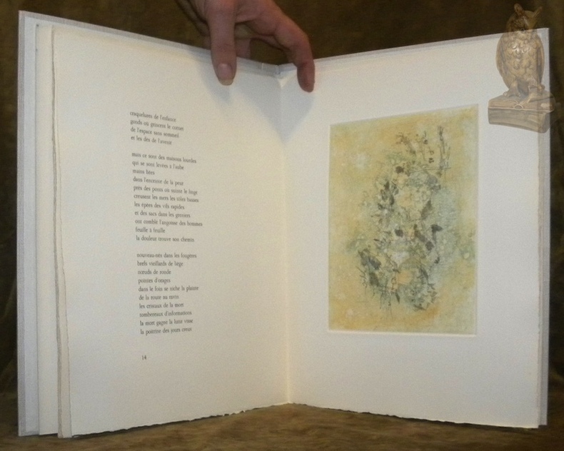 Paris, Alexandre Loewy 1962, 345x270mm, 26pages, en feuille sous couverture rempliée, chemise et emboitage toilé. Un des 90 exemplaires sur vélin de rives, numéroté n.° 18 / 100. Signés par l’auteur et par l’artiste au collophon. Bel exemplaire.