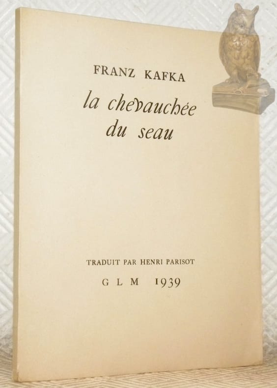 "Collection un divertissement, huitième cahier." - Première édition de la traduction de "Der Kübelreiter" paru 1931 dans "Beim Bau der Chinesischen Mauer". - Un des 100 exemplaires sur papier Le Roy Louis, teiné Alsace (après 10 exemplaires sur Japon).