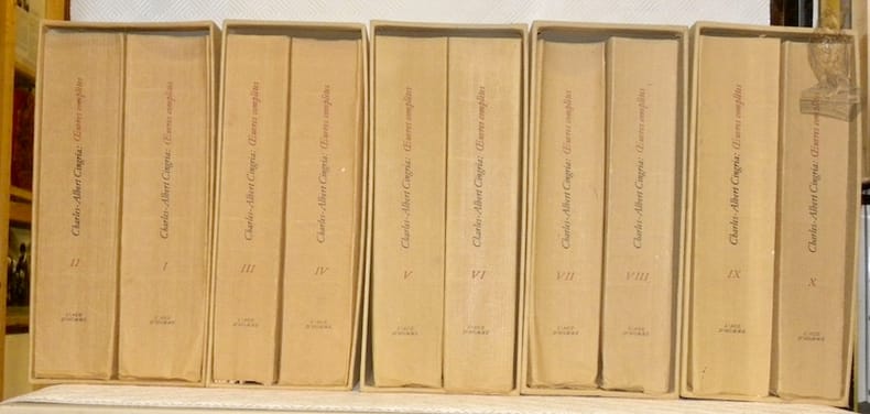 Lausanne, Editions L’Age d’Homme sans date, vers 1967 - 1970, 295x210mm, broché. Couverture à rabats. Grande marge. Avec 5 étuis (2 tomes par étui). Un des 25 exemplaires sur papier Richard-de-Bas à la main pur chiffon blanc séché à l’air, numéroté n.° XI / XVII, premier tirage avant 63 exemplaires sur papier Johannot pur fil blanc filigrané et avant 1275 exemplaires numérotés. Très bel exemplaire.