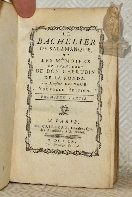 Paris, Cailleau 1765, 145x90mm, Cartonnage muet en attente de reliure. Ex-libris : Manfred Gsteiger, autrement intérieur porpre.