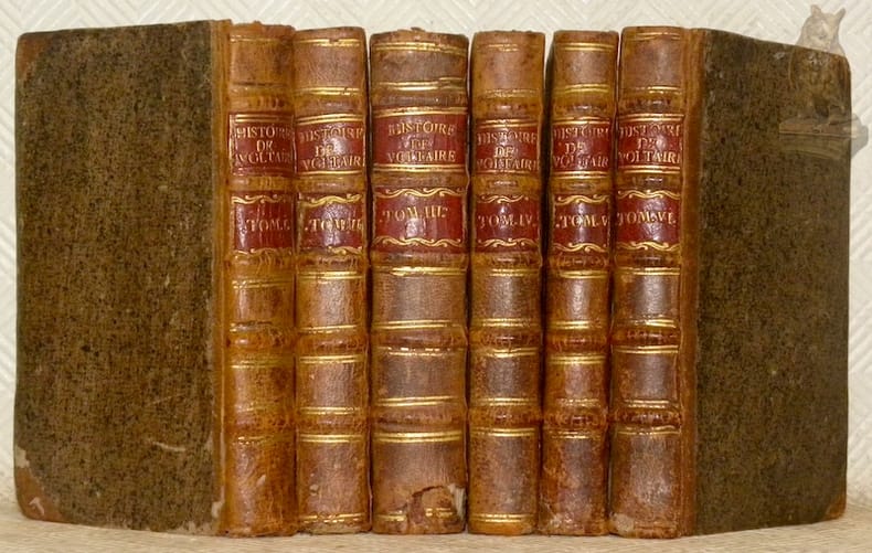 La Haye - Leipzig et Dresde - Basle, Jean Neaulme - George Conrad Walther 1753 - 1754 - 1757 - 1758, 155x100mm, reliure demi-veau blond à coins avec pièces de titre et de tomaison, et filets dorés au dos à cinq nerfs, plat papier moucheté.
