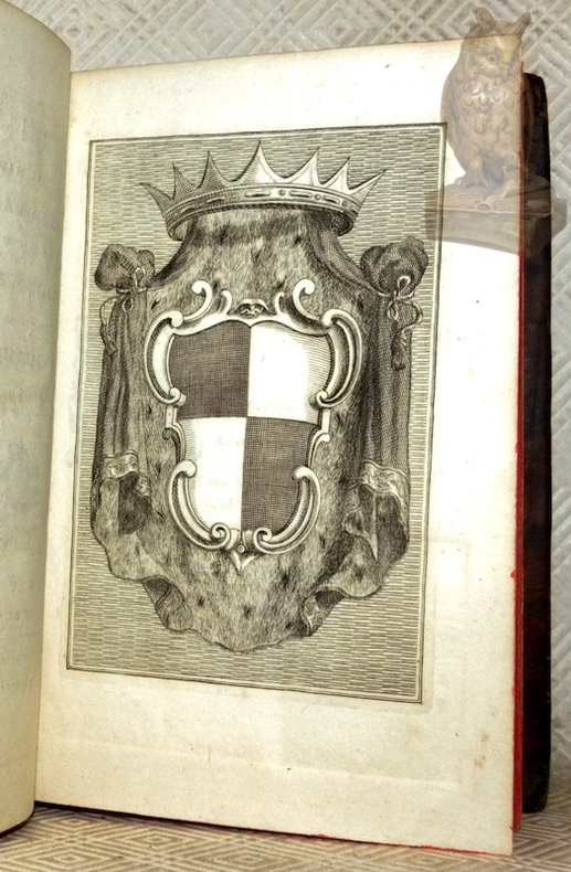 Venezia, Francesco Piacentini 1738, 200x135mm, XLIV - 310pagine, rilegatura dell'epoca in pelle di vitello con titolo, motivi, filetti e decorazioni dorati sul dorso a cinque nervature, taglio rosso, risguardi in carta marmorizzata. Piccolo strappo sul cappuccio inferiore, per il resto bella rilegatura. Ex libris moderno. Ottimo stato.