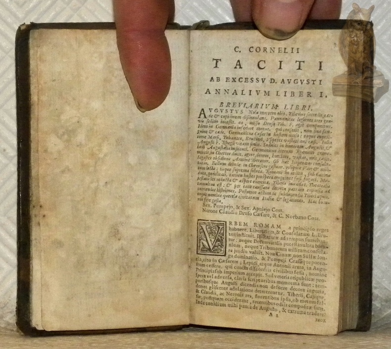 Amsterodami, apud Guiljel 1631, 110x70mm, reliure basane. Reliure d’époque veau marbré avec ornementations dorées au dos, garde papier marbré, pièce de titre au dos manquante et aussi page de titre. Inscription ancienne sur le haut de la page de garde supérieure, autrement intérieur propre.