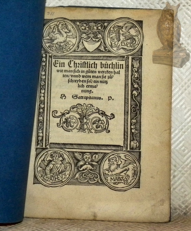 titre gravé avec en médaillon les 4 évangélistes, une lettrine gravée sur bois, Pour un paiement via PayPal, veuillez nous en faire la demande et nous vous enverrons une facture PayPal