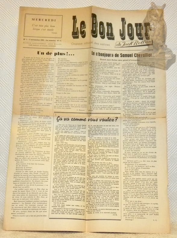 Lausanne, 1952-1958, 445x305mm, les journaux sont pliés en quatre (de rire, naturellement). Ajouté à la collection, le premier numéro Le Journal de Jack Rollan 1er janvier 1960, successeur éphémère du Bon Jour.