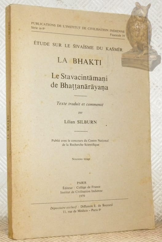 Paris, Collège de France, Institut de Civilisation Indienne 1979, 250x165mm, 162pages, broché. Faible rousseurs au dos et sur les bords des couverutres, cachet du possesseur sur le bas du coin du la page de garde supérieure, autrement intérieur propre, bon état.
