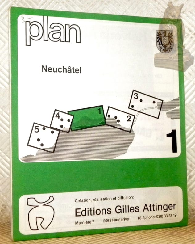 Hauterive, Editions Gilles Attinger 1982, format 180x150mm (pliée). Au verso et sur le haut du plan diverses encarts d’entreprises de la région.