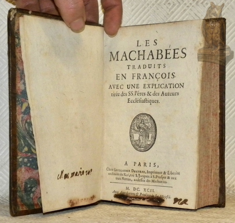 Paris, Chez Guillaume Desprez 1693, 180x120mm, reliure plein veau marbré de l'époque, dos ornés à cinq nerfs, plats et tranches marbrés. Taches brunes avec manque sur le bas des deux premières feuilles, sans atteinte au texte.
