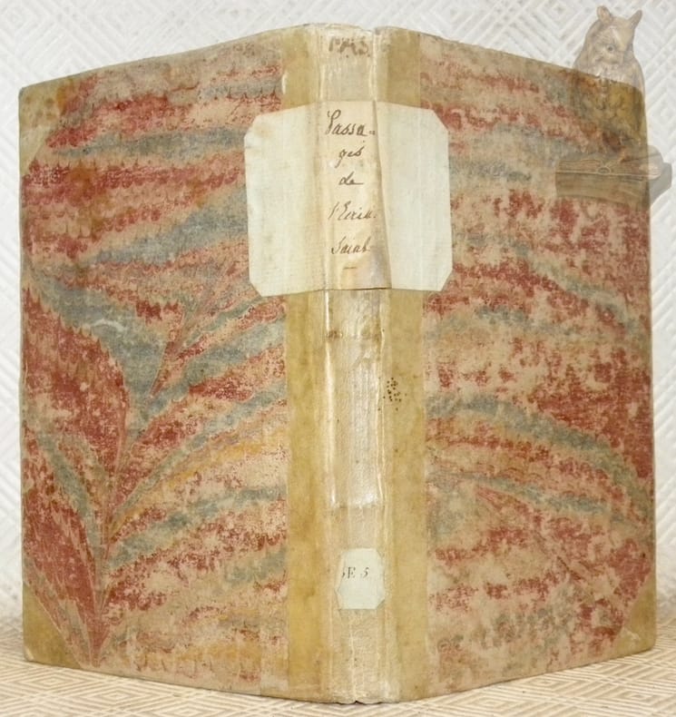 Genève, Chez Emanuel du Villard 1743, 180x115mm, cartonage marbré. en attente de reliure. Barbier, T. 1, 723. Inscription manuscrite sur la page de garde supérieure.