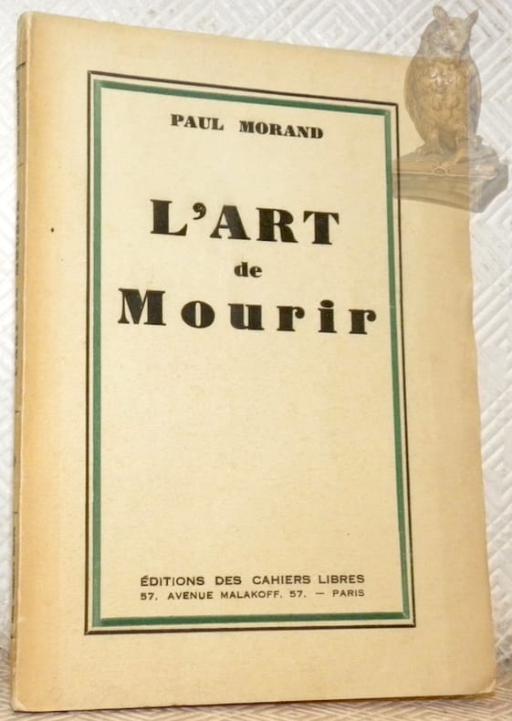 4. MORAND Paul : L’art de mourir. Ed. des cahiers libres Paris 1932. E.O. L’un des ex. sur Alfa, seul grand papier après 10 Hollande. Amical envoi à Victor GOEDORPHE, « ce manuel du bon vivant ». Broché in-8, couverture jaunie avec petit manque au dos. Très rare