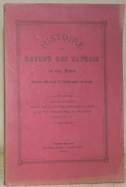 Torre Pellice, Imprimerie Alpine 1913, 245x165mm, 199pages, broché, déchirure sur la page de titre.