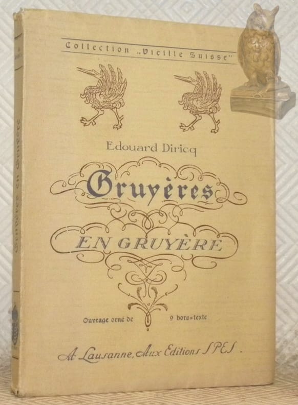 Lausanne, SPES, 1921, pt. in-8°, frontispice, Vue dépl. en couleurs ‘La place de Gruyère’ + 120 p., illustrations sur planches photogr. d’après la coll. de J. L. Reichlen, brochure originale illustrée.