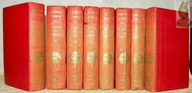 chez P. Jannet - A. Franck ; Plon 1895 9 volumes in-16, percaline rouge, dos orné, encadrements à froid, non rogné. Dos passé. Menus frottements. Bon exemplaire.