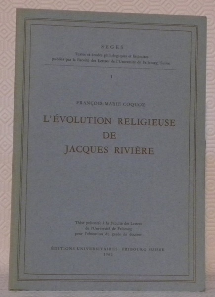Fribourg, Editions Universitaires 1963, 240x160mm, 216pages, broché. Bel exemplaire.