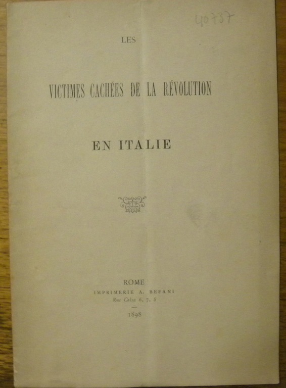 Rome, impr. A. Befani 1898, 215x150mm, 18pages, broché.