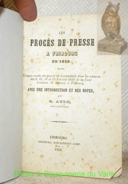 Fribourg, Imprimerie Marchand 1858 175x125mm, broché, couverture moderne..