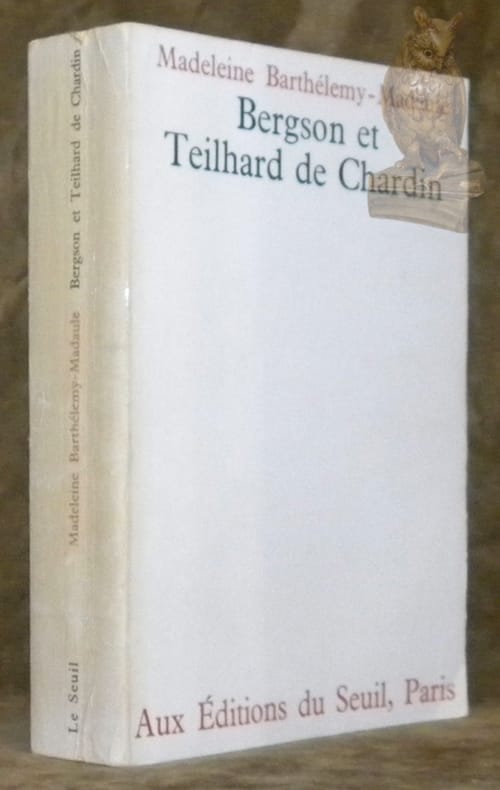 Paris Aux éditions du Seuil 1963 in 8 (20,5x14) 1 fort volume broché, 685 pages, avec un petit feuillet volant d'errata, petit cachet ex-libris de Jean Suire. La vision teilhardienne et l'intuition bergsonienne. 1°/ Le cosmique: Les structures teilhardiennes de l'évolution - L'évolution de la matière - L'évolution de la vie - L'évolution créatrice de Bergson - L'évolution de Bergson et de Teilhard. 2°/ Le personnel: La personne humaine et le phénomène humain - L'univers personnel - Le divin - La personne, la morale et la religion chez Henri Bergson et Pierre Teilhard de Chardin - Peut-on parler de philosophie teilhardienne? Appendices: Tableaux des catégories teilhardiennes - Liste chronologique des textes de Teilhard sur Bergson - Pierre Teilhard de Chardin et Édouard Le Roy - bibliographie - index des personnes citées. Edition originale sur papier d'édition. Bon exemplaire ( Photographies sur demande / We can send pictures of this book on simple request )