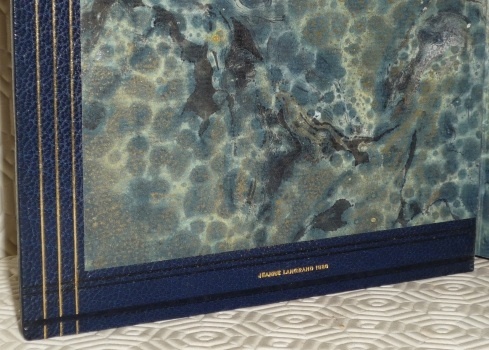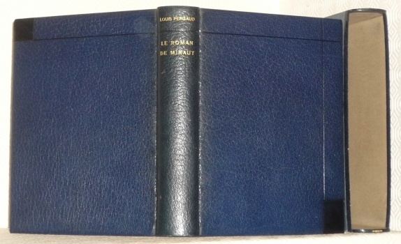 Paris, Editions Mornay 1928, 205x140mm, 363pages, maroquin bleu, auteur et titre dorés au dos, filet à froid sur les plats, cuir noir sur le coin inférieur et supéreur des plats, tranche supérieure dorée, couverture conservée, sous emboîtage avec bordure en maroquin bleu, reliure signée Jeanne Langrand 1930 en parfaite condition. Tirage sur papier de Rives, avec la suite des illustrations sur Japon, qui ne devrait pas figurer avec ce tirage, 349/878.