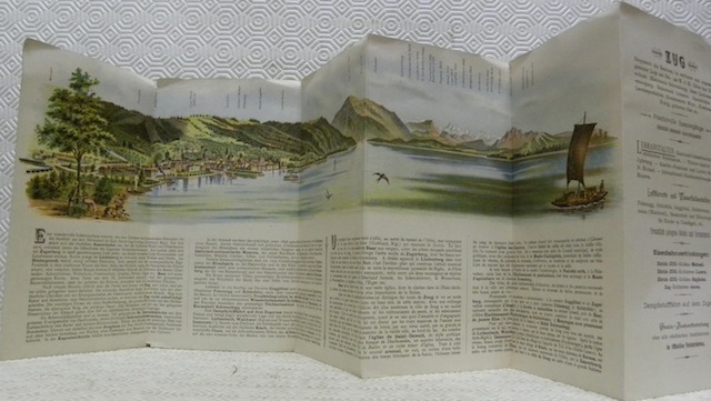 Zürich, Lith A. Thellung ohne Jahr, ca. 1880, 213x115mm, 685x213mm, dépliant litho en couleur. Sehr schönes Exemplar.