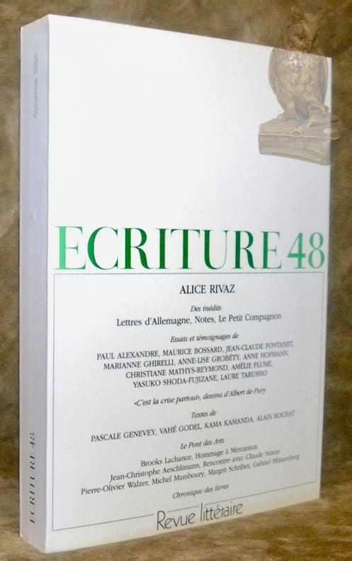 Lausanne, Revue Littéraire Ecriture 1996, 210x150mm, 302pages, broché. Couvertures à rabat. Exemplaire à l'état de neuf.