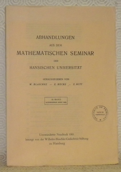 Hamburg, Wilhelm-Blaschke-Gedächtnis-Stiftung 1969, 250x175mm, 177Seiten, broschiert. Bibliotheksstempel. Schönes Exemplar.