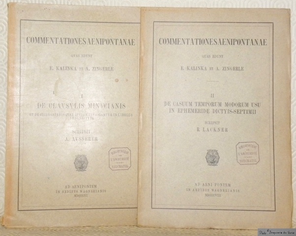 Aenipontem, Aedibus Wagnerianis 1906, 240x163mm, 96 + 55Seiten, broschiert. Schönes Exemplar.