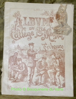 Fribourg, Saint-Paul - Imp. H. Wilczek 1896, 335x250mm, 64pages, entièrement lithogrpahié, illustrations in-texte et 13 planches hors-texte, broché, couverture illustrée par J. Reichlen. Déchirures sur le haut et le bas du dos, autrement bon état.