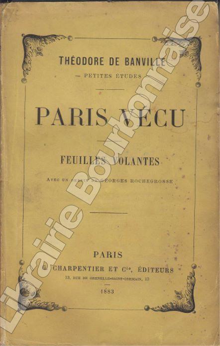 Paris Charpentier 1883 1 vol. Relié in-12, bradel demi-percaline vert d'eau, pièce de titre de chagrin marron et fleuron doré au dos, couvertures conservées, non rogné, 464 pp. Edition originale ornée d'un frontispice gravé par Rochegrosse. Excellent recueil de petites études sur Paris au XIXe siècle. Un des 10 exemplaires de tête numérotés sur Chine. Quelques infimes rousseurs éparses et modeste reliure de l'époque.