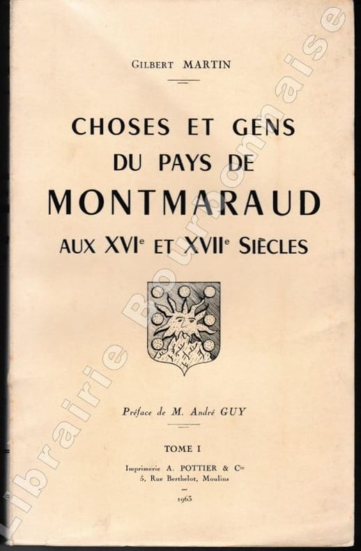 Edition originale tirée à 500 exemplaires. Premier volume d'une série de 4, celui-ci traite intégralement de l'histoire de Montmarault aux XVIe et XVIIe siècles, le suivant s'intéressera aux communes alentours. Les deux derniers volumes seront en grande partie rédigés par Robert Virmont.