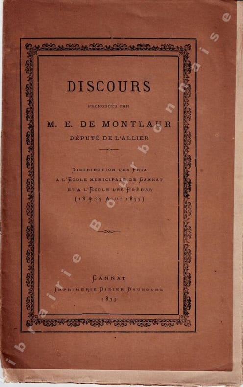 Gannat, Imprimerie Didier Daubourg, 1875 ; plaquette in-8, brochée. 16 pp. Très bon état.