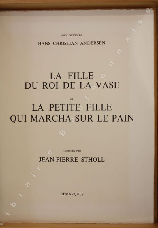 Edition tirée à 199 exemplaires. Exemplaire d'artiste contenant le texte des deux contes illustrés de 12 lithographies originales. Enrichi d'un dessin original, d'un zinc original et d'une suite sur papier Japon. Stholl est né en 1949 à Ermont, Val-d'Oise. Il a publié son premier livre illustré (une suite de 150 dessins érotiques) chez Eric Losfeld en 1971. Il a également donné des lithographies pour la Vouyvre de Marcel Aymé aux Editions du Grésivandan (1978), ou encore douze estampes pour "La Belle et la Bête" de Madame de Villeneuve, aux mêmes Editions Remarques. En 1980, les Editions de l'Ibis, ont publié Le rideau levé ou l'éducation de Laure, de Mirabeau, orné de 8 lithos de Stholl...